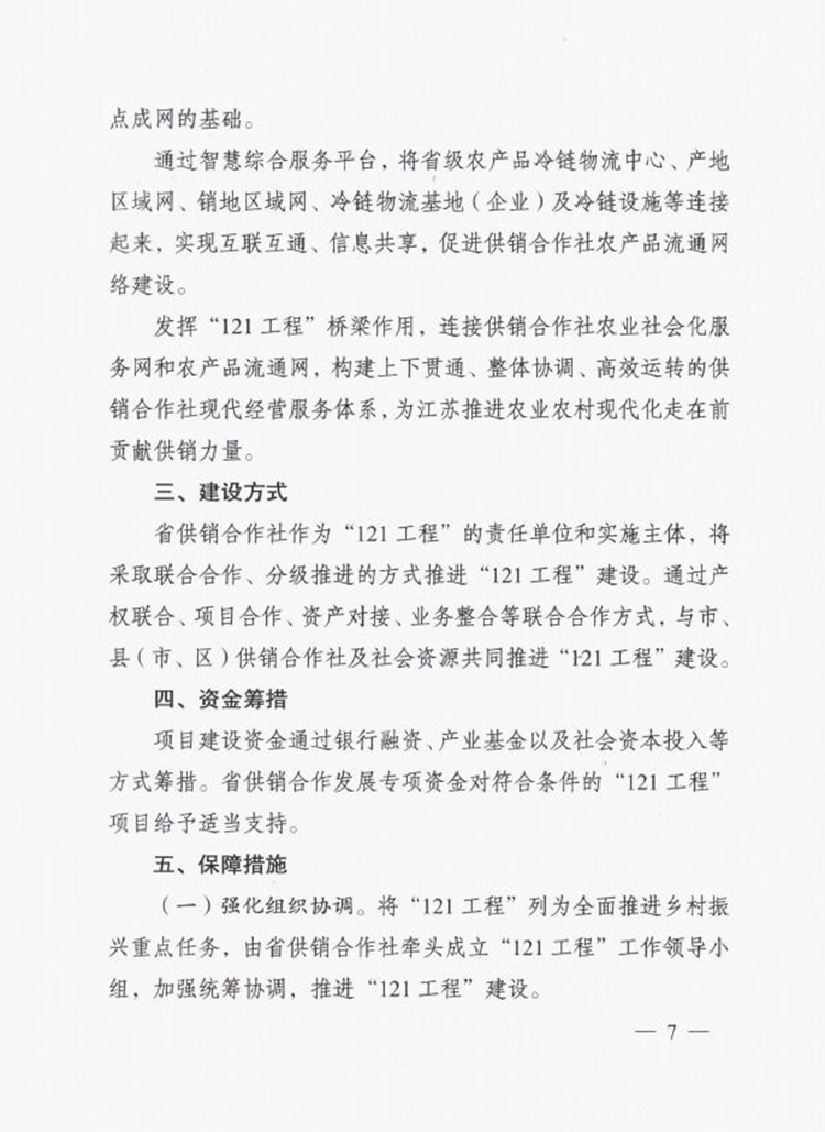 (一)強化組織協調。將“121工程”列為全面推進鄉村振興重點任務,由省供銷合作社牽頭成立“121工程”工作領導小組,加強統籌協調,推進“121工程”建設。