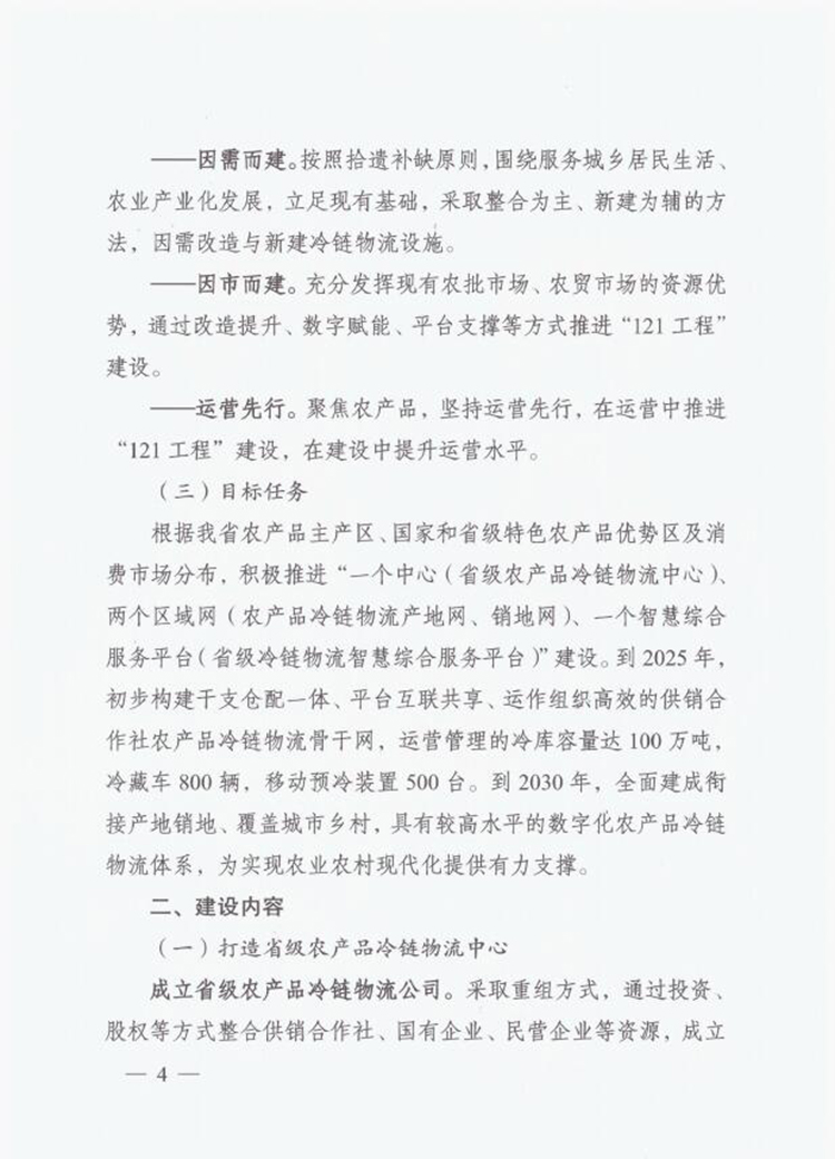 “121工程”對補齊我省農產品冷鏈物流短板至關重要。各部門要按照職責分工,大力支持供銷合作社“121工程”建設,更好地服務城鄉居民和農業產業高質量發展。