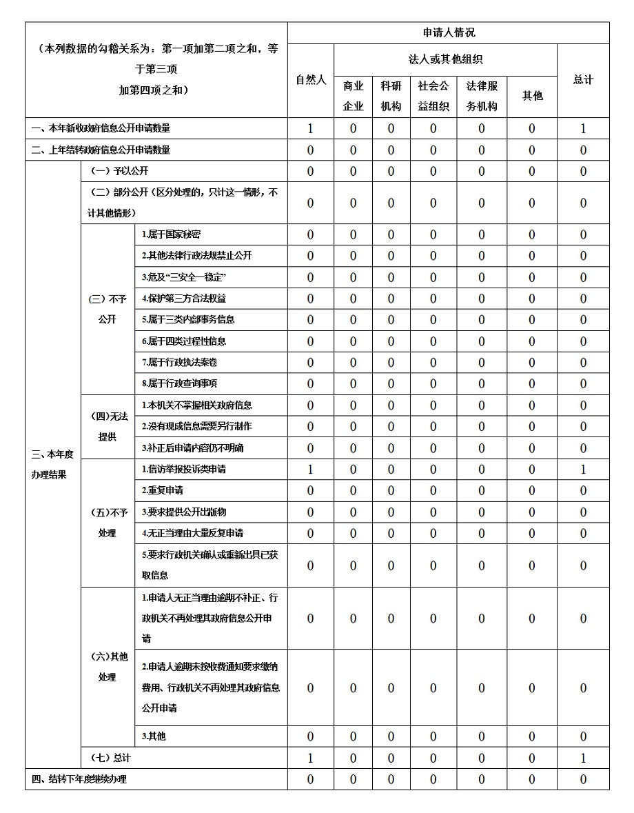 三、收到和處理政府信息公開申請情況