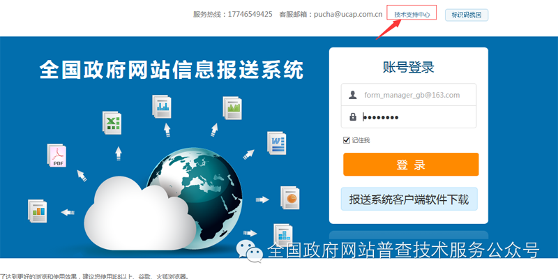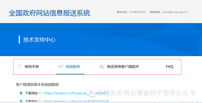在全國政府網站信息報送系統頁面,點擊右上角“技術支持中心”,即可下載獲得。