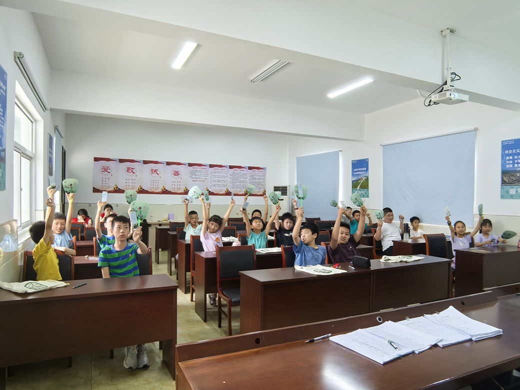 活動(dòng)最動(dòng)人的環(huán)節(jié)出現(xiàn)在綠書簽創(chuàng)作時(shí)刻。工作人員發(fā)放的團(tuán)扇和書簽瞬間變成“心靈畫布”,孩子們或趴或跪認(rèn)真書寫。當(dāng)扎著蝴蝶結(jié)的媛媛舉起寫有“好好學(xué)習(xí),天天向上”的書簽時(shí),現(xiàn)場爆發(fā)出歡樂的掌聲,還有的孩子寫下了“要和小伙伴做永遠(yuǎn)的好朋友”的承諾。稚嫩的童聲傳遞著純凈的心聲,小小的“綠書簽”守護(hù)著孩子們的心靈。