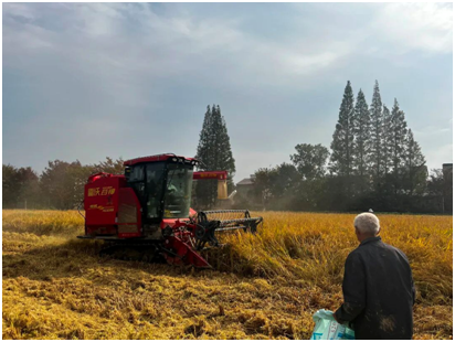 據了解,墓東村此季水稻平均畝產高達1200斤,迎來了實實在在的豐收年。這一高產數據的背后,是“藏糧于技”的生動實踐,從春天的插秧機精準播種,到生長期無人機進行高效、精準的施肥與病蟲害防治,再到眼下收割機的全力沖刺,機械化、智能化管理貫穿了水稻生長的全周期,為穩產高產奠定了堅實基礎。