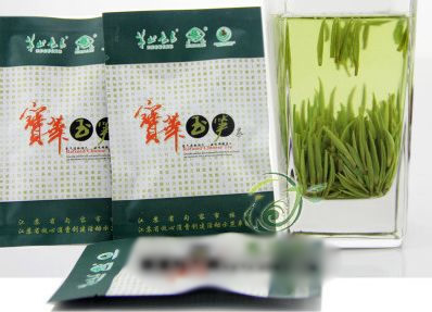 寶華玉筍風格獨特,是單芽精心炒制而成。條索挺直緊結,色澤翠綠,鮮活顯毫,香氣清鮮持久,滋味鮮醇爽口,湯色淺綠明亮,葉底嫩綠勻齊。在透明茶具中沖泡后,芽尖朝上,亭亭玉立于杯底,似雨后春筍,品格高雅,極為珍貴。