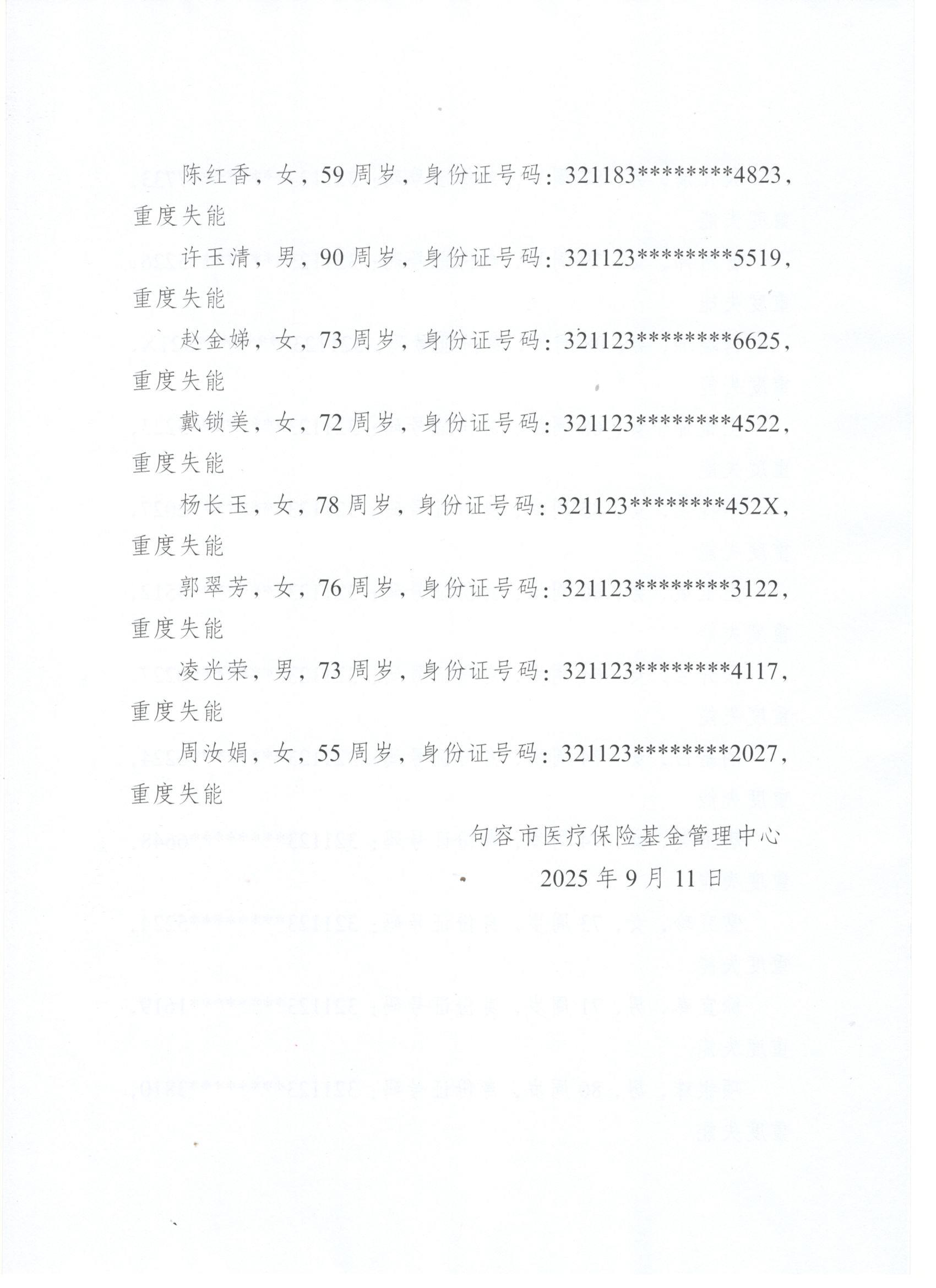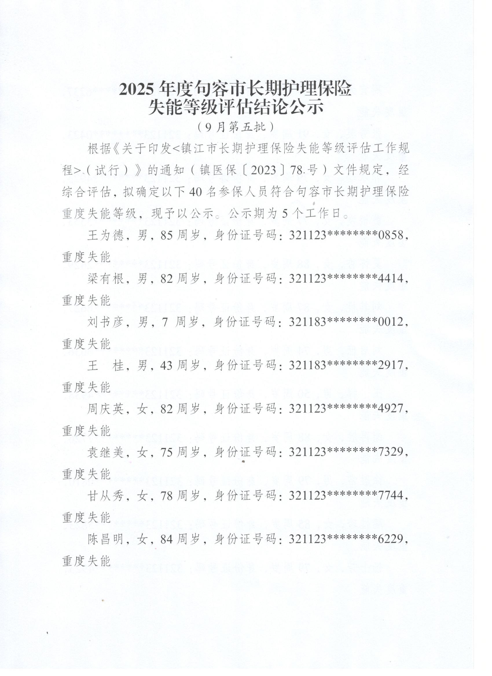2025年度句容市長期護理保險失能等級評估結論公示(9月第五批)