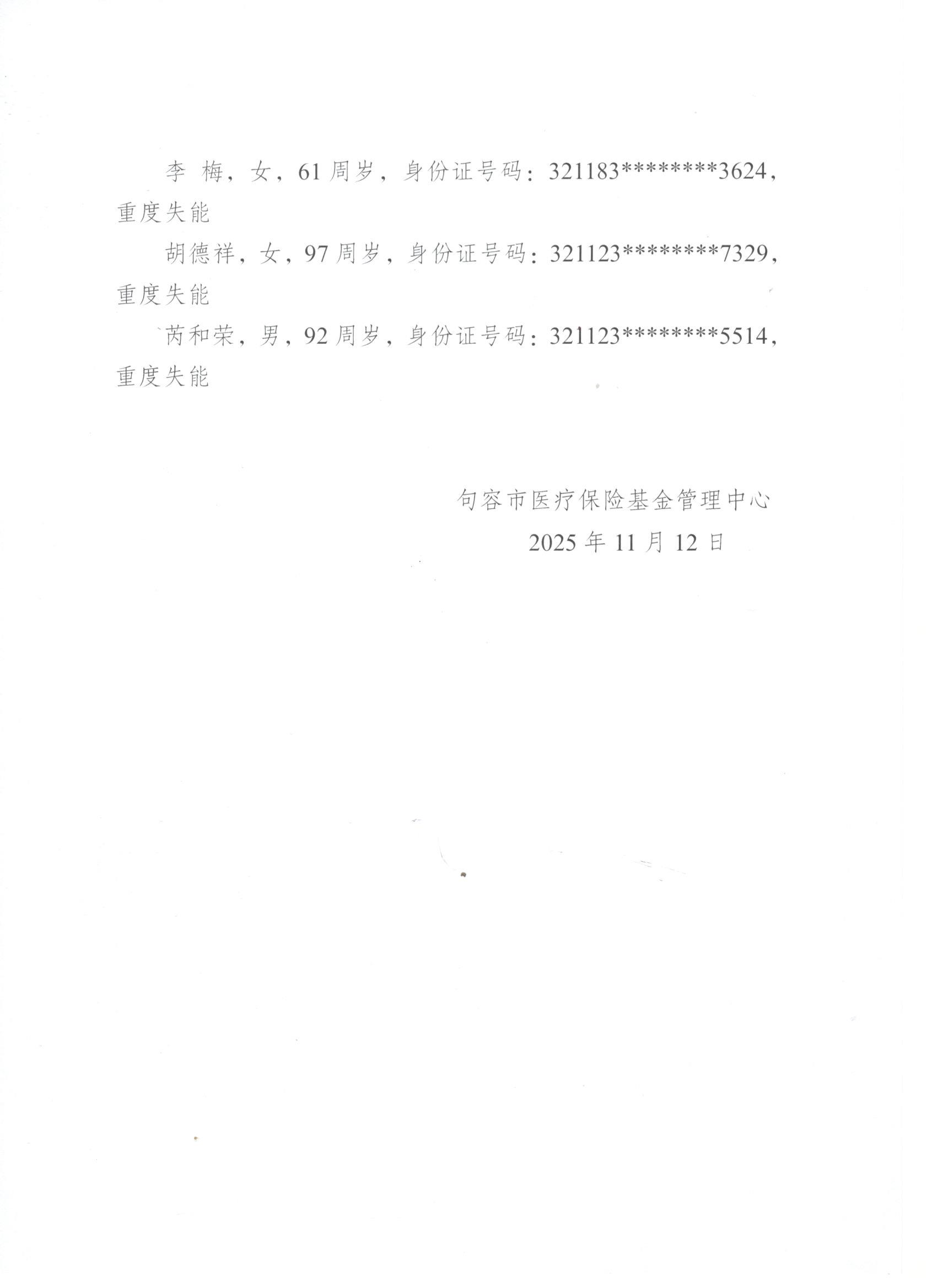 2025年度句容市長期護理保險失能等級評估結論公示(11月第二批)